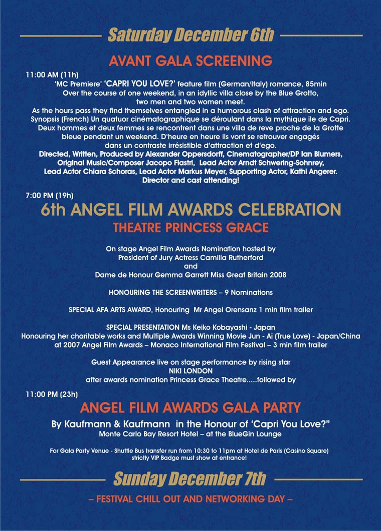 2008 Angel Film Awards Monaco International Film Festival angel awards