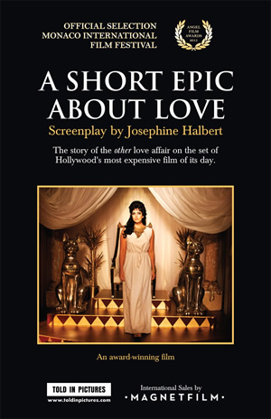 IN OFFICIAL SELECTION “A SHORT EPIC ABOUT LOVE” WRITTEN BY JOSEPHINE HALBERTBIO: Josephine Halbert is a London based, British artist, writer and film-maker - Her work has been exhibited at galleries and festivals internationally. A 'happy accident' led her to making the leap from works in print to moving images when she created a short animated film ‘When It Suits Me’ (1999) to accompany a gallery show of her artwork and book of the same name. 'The short film was was meant to be a side show to my images, a presentation of a free spirited character that I have drawn since childhood and continue to do so, but that short animation piece led to adventures in filmmaking with real people. Suddenly a door flew open to a new world and I met a lot of the film making community at film festivals - I knew that my interest in my work was always based on communicating ideas with people and a love of the visual medium of storytelling and so all the years as a film lover and the days looking through movie books as a child brought up in a rural and remote Northumbrian landscape seemed to make sense 'Where I was brought up made the Bronte's place look like Las Vegas on a Saturday night but it was very beautiful and good for developing an imagination'. Her filmography includes her independent productions (as director/producer and writer), When It Suits Me (1999), an animated short film about free spirited creatures on a mission to explore hedonistic and spiritual adventures, Shadow Buddy (2003), her first dramatic narrative starring British musician and actress Sukie Smith about a woman meeting the adult version of her childhood imaginary friend is a tribute to the director's own childhood imaginary playmate and filmed at the very location of their happy summer adventures. Time Travel Boyfriends (2009) a 35mm short ten minute film she directed based on her published book of the same name which had solo exhibitions including Beverly Knowles Fine Art and Tenderpixel galleries in London had a successful film festival run and won several awards including two Angel Film Awards in 2009 and then went on to win the PRIX RADi at the Cannes Film Festival in 2010, a distribution prize given to one international short film in partnership with the Agence de Court in Paris and the Short Film Corner. It also competed for the European Melies Award in the same year and continues to be widely exhibited. Her most recent and award winning short film, A Short Epic About Love (2013), twenty minutes long and her second adventure with 35mm film, was inspired by her life long love of the 1963 epic Cleopatra and, is the story of another love-affair that takes place on the set of the epic Hollywood blockbuster against the backdrop of the world famous Burton and Taylor romance and was shot in a disused paint factory on the River Tyne in Northumberland. It premiered at the Femmes Fantastique Programme at the 2014 London Short Film Festival and was accepted into the Official Selection at the Academy Award Qualifying Huesca Film Festival later that year which led to an international distribution deal with Magnetfilm in Berlin, which includes in its line-up of short films several of the Oscar nominated and winning films of the last two years. It recently picked up a Gold Remi award at the WorldFest Houston Festival in 2015. She has commissioned and produced the music for all her productions to date including her most recent work, completed in 2015, her first radio drama, 'Jim', a rock and roll story about a transatlantic romance between an American Rock Star and a young English aspiring writer, is set in the countercultural youth quake of the late 1960s and produced at dsound Studio in London. Her next film project as a director will be a co-production with London based production company xFilm and is scheduled to shoot in the UK in early 2016. Before pursuing studies at art school and a career in 'creative' art and filmmaking, Josephine worked in the media for several years, mainly in the publicity field for various film and television companies including Sky Television (then Sky Channel), Channel Four, ABC News (American Broadcasting Corporation) Her first job and adventure in the film business was at the London Greek Street office of Golden Harvest Films (a Hong Kong and Los Angeles owned film company in whose early days produced the Bruce Lee martial arts films) in the early 1980s where she worked as a secretary in the publicity department, running the photo library and being responsible for the Jackie Chan Film Club. “A Short Epic About Love” A Short Screenplay Written by Josephine HALBERT (UK) Logline: (Fantasy/Romance) 'The story is a love-letter to the films of the golden era of 1960s Cine Citta Studios where Hollywood's view of Ancient Rome met the contemporary Rome of Fellini. Synopsis: The other love-affair on the set of Hollywood's most expensive film of its day. Against the backdrop of the much publicized love affair of Elizabeth Taylor and Richard Burton, a young woman finds herself in the backstage world of the famous 1963 Ancient Egyptian blockbuster in a film studio near Rome. We follow her as she embarks on her own intense emotional romance over the final days of the shooting of the doomed epic. Burton and Taylor's romance remains a constant presence during her own romantic awakening in a world she knows nothing about. A Short Epic About Love is a love-letter to the films of the golden era of 1960s CineCitta Studios where Hollywood's view of Ancient Rome met the contemporary Rome of Fellini. |