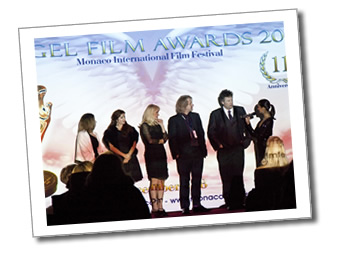 Gerald Fox multi award winner and Best Feature Film Director in 'Mother's Milk' on stage with Roland Joffé and Claire Farwell