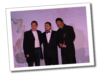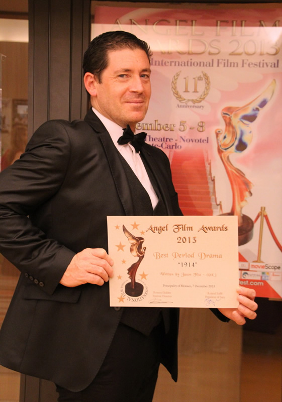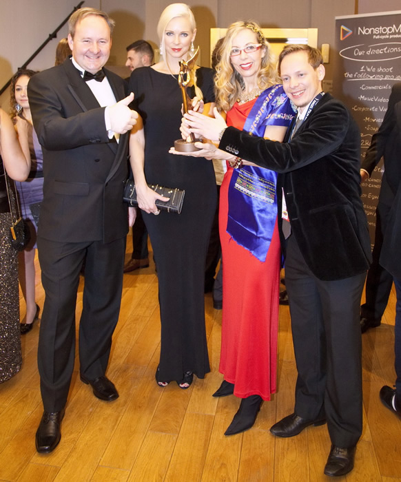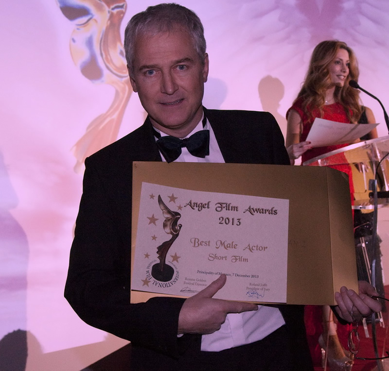 Martin Gooch winner the Angel Film Award for Best Independent Spirit with Jury President Roland Joffé and Claire Farwell Jury Member